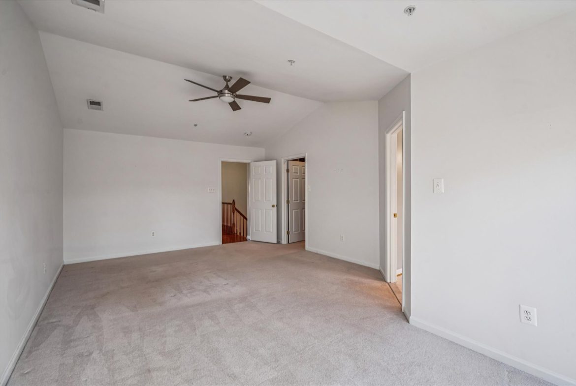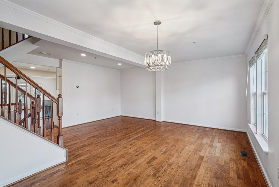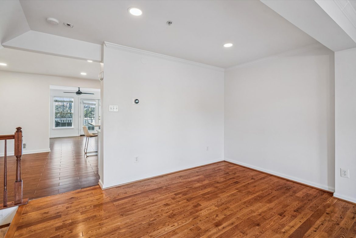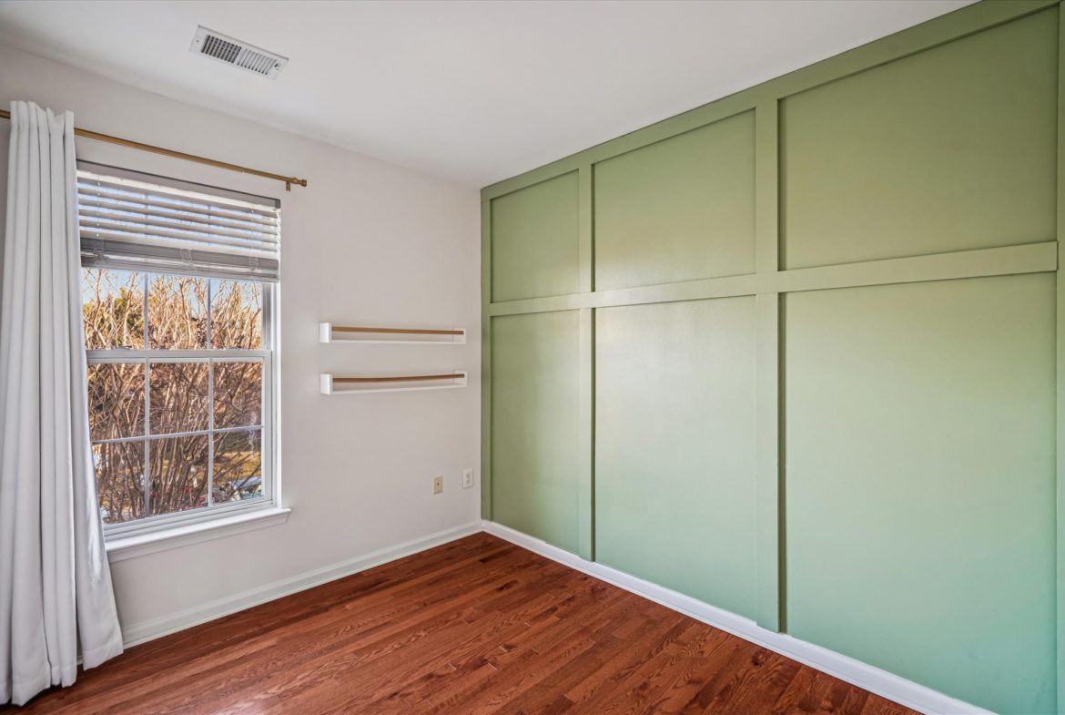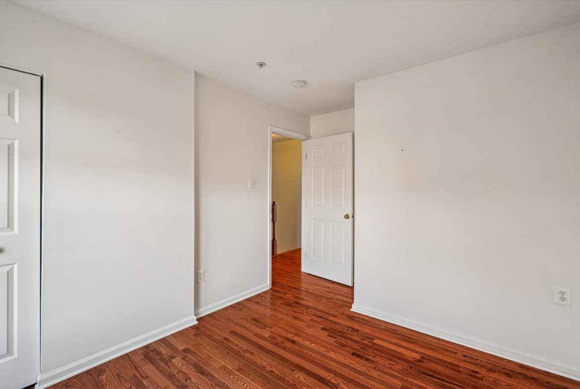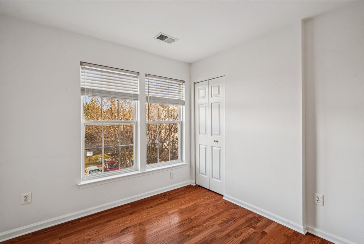 The top floor features the spacious owner’s bedroom with a sitting area, a spacious walk-in closet with built-ins, and a spa-like bathroom with a shower and a soaking tub. There are two additional bedrooms with hardwood flooring and a full hall bath.