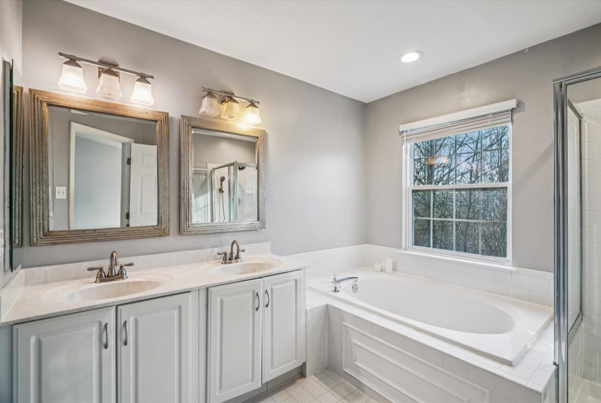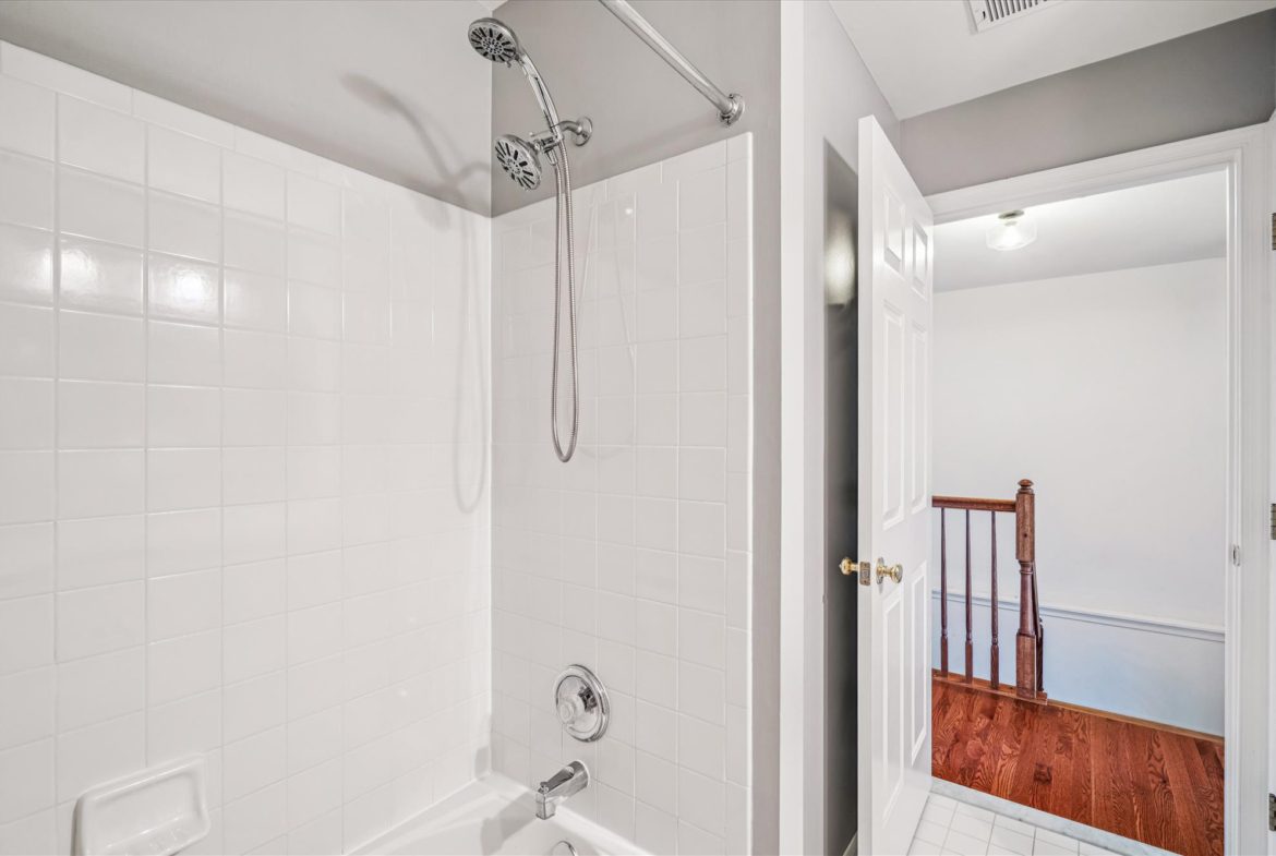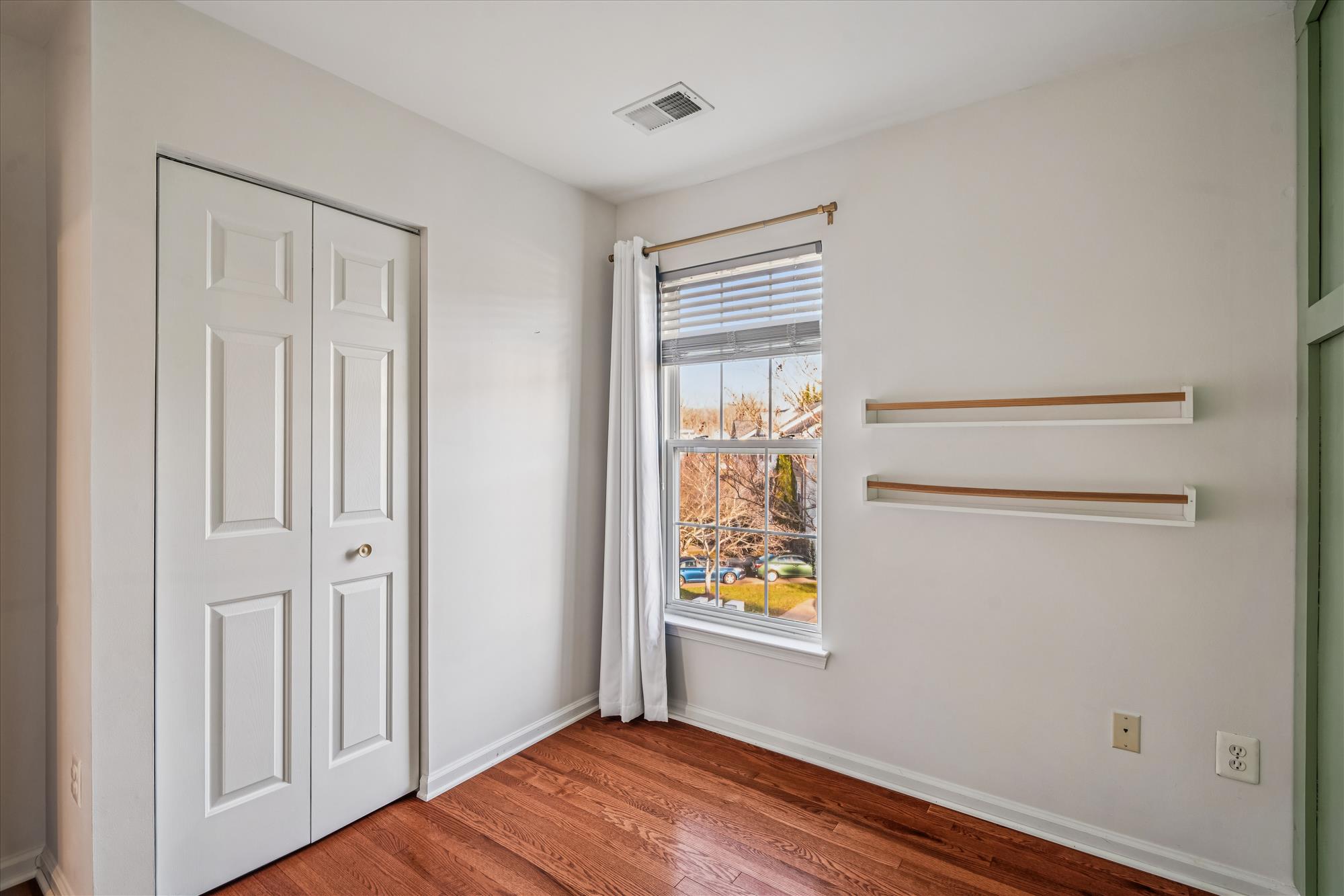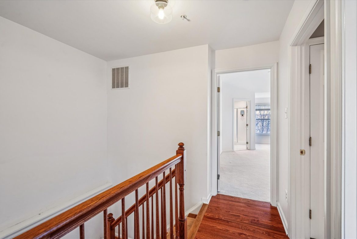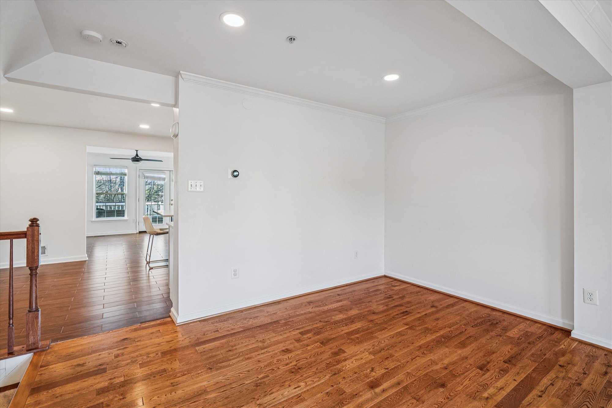 The top floor features the spacious owner’s bedroom with a sitting area, a spacious walk-in closet with built-ins, and a spa-like bathroom with a shower and a soaking tub. There are two additional bedrooms with hardwood flooring and a full hall bath.