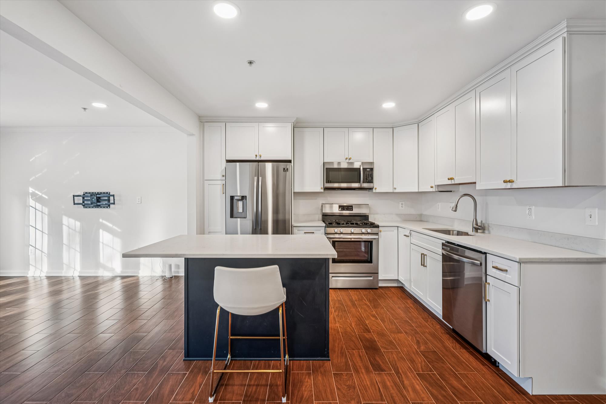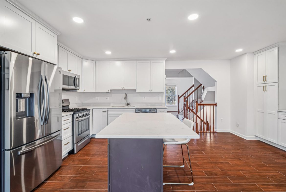 The upper level one showcases a fully renovated gourmet kitchen, upgraded top to bottom with brand-new cabinetry, granite countertops, new stainless steel appliances, and a spacious center island — perfect for entertaining and everyday living. The kitchen opens to an expanded, bumped-out living area and a rear deck with its own staircase to the backyard, ideal for relaxing or hosting guests. A bright living room with hardwood flooring and a formal dining room, and an inviting sitting area, complete this level with both elegance and functionality.