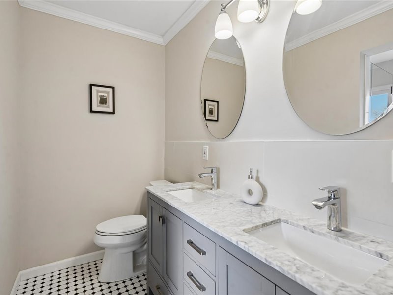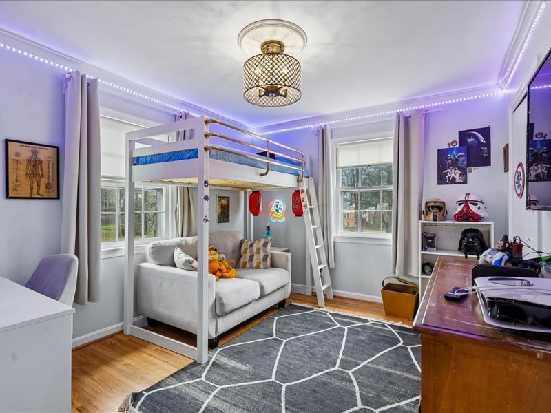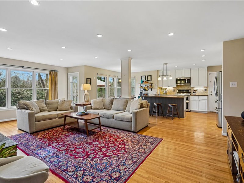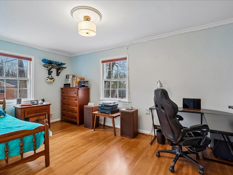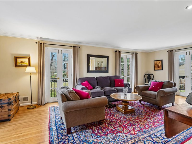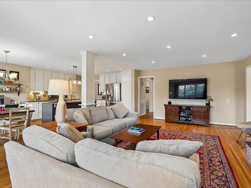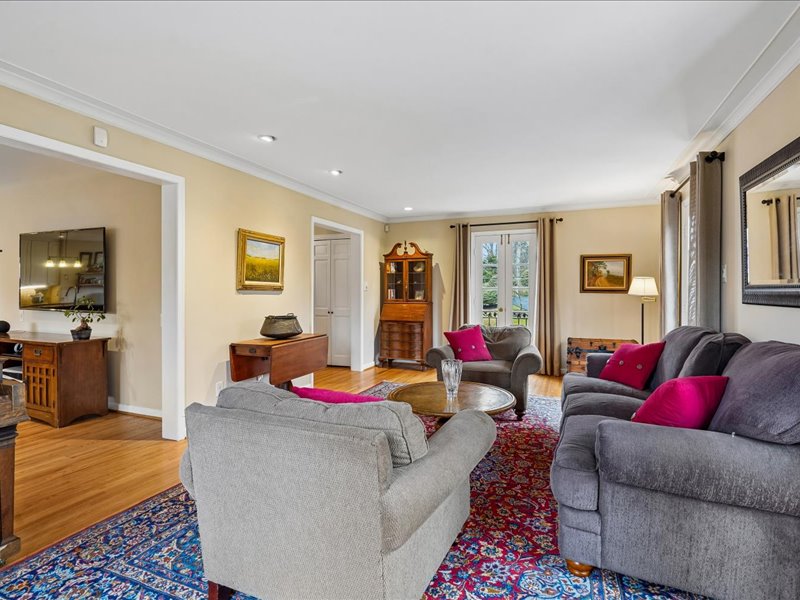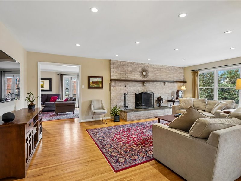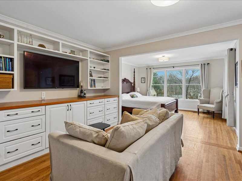 Retreat to the bedroom level and the expanded primary suite, featuring a sitting room with built-ins, a walk-in closet, and an updated primary bath. Additional highlights include hardwood floors, crown moldings, and recessed lighting throughout, enhancing the home’s inviting ambiance.
