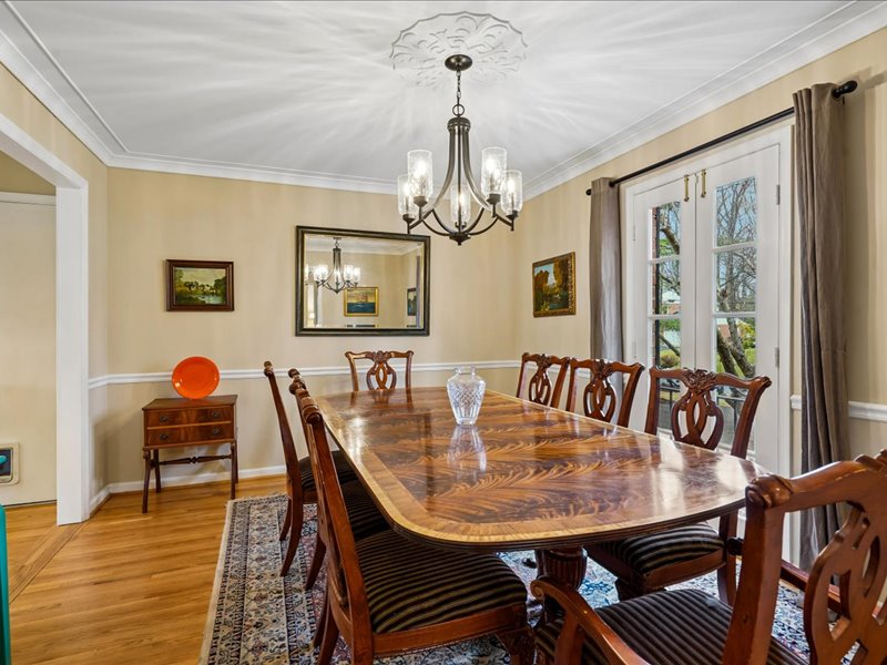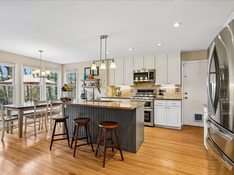 Step inside to discover a harmonious blend of classic charm and contemporary design. The open floor plan invites you into a gourmet kitchen, complete with granite countertops, stainless steel appliances, and a spacious center island, ideal for culinary enthusiasts. A previous addition adds a welcome space for everyday dining and provides welcoming views of the beautiful backyard. The adjoining family room, accentuated by a cozy brick fireplace, creates a warm gathering space, while the formal dining room offers an elegant setting for special occasions.