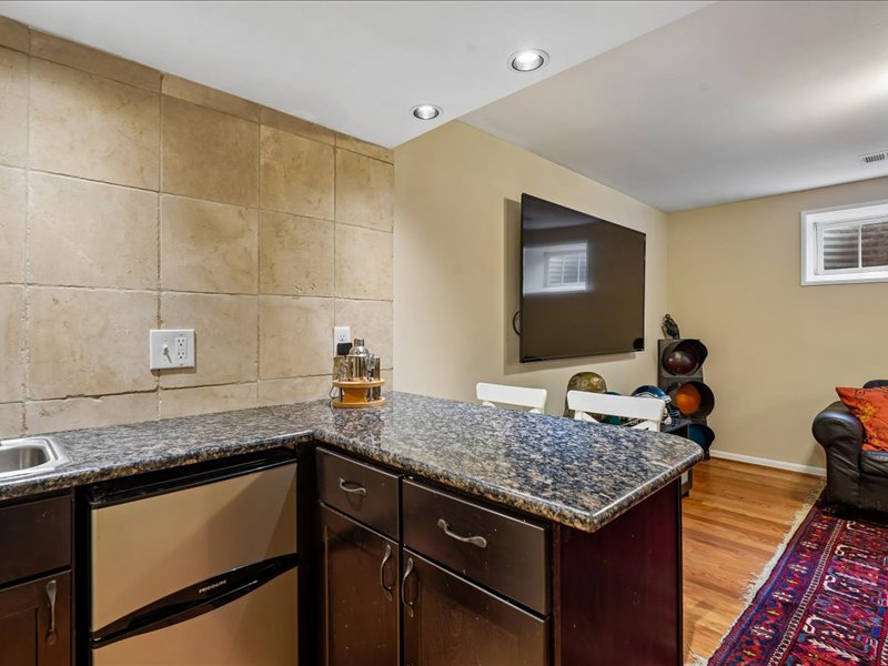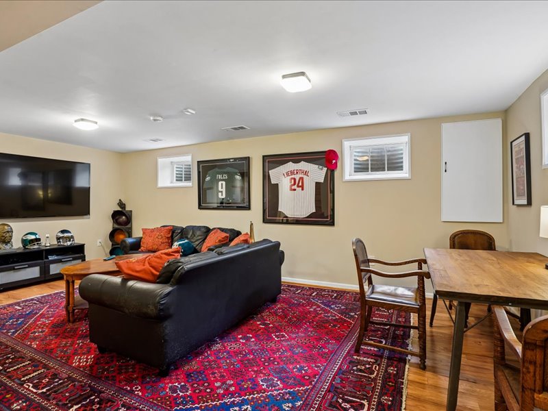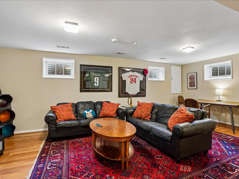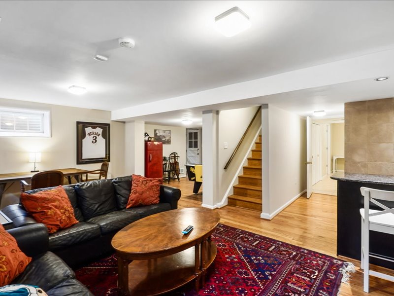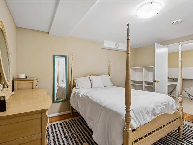 The fully finished basement provides ample space for recreation or relaxation, with a large laundry room, full bath, bedroom, storage space, and convenient walkout access to the private rear yard.